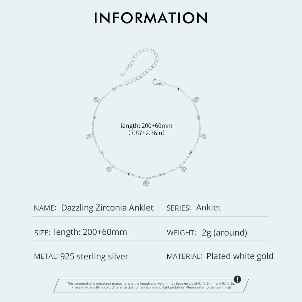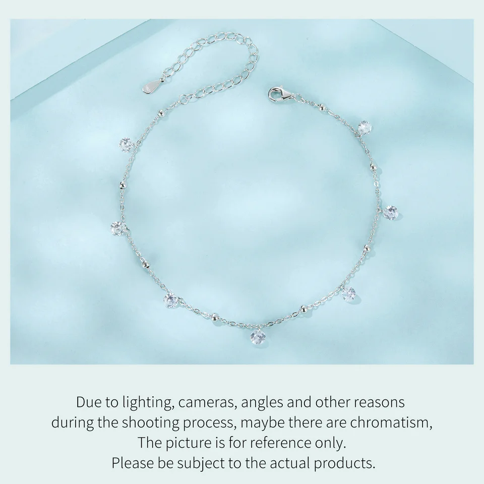 Delicately crafted in genuine 925 sterling silver, this zirconia anklet adds a subtle sparkle to your every step. Its adjustable chain ensures a perfect fit, making it both timeless and comfortable.