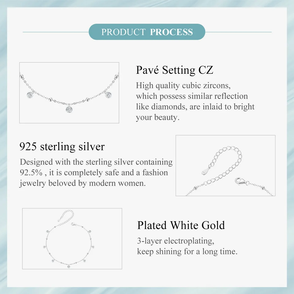Cubic Zirconia Anklet | 925 Sterling Silver, Adjustable Chain