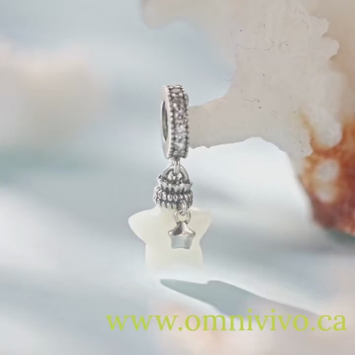 Crafted in genuine 925 sterling silver with luminous enamel details, this ocean-inspired charm brings playful sparkle to your bracelet. By day, it shines as a cute shell, moon, cat, or star; by night, it softly glows — like keeping a wish alive in a bottle.