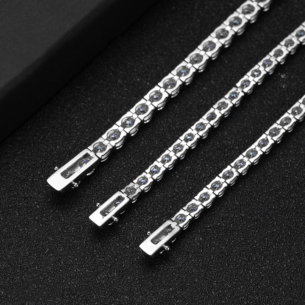 A timeless moissanite tennis bracelet crafted in 925 sterling silver, featuring D color VVS1 stones in a single-row setting. Certified by GRA, it delivers lasting sparkle and luxury for both men and women.